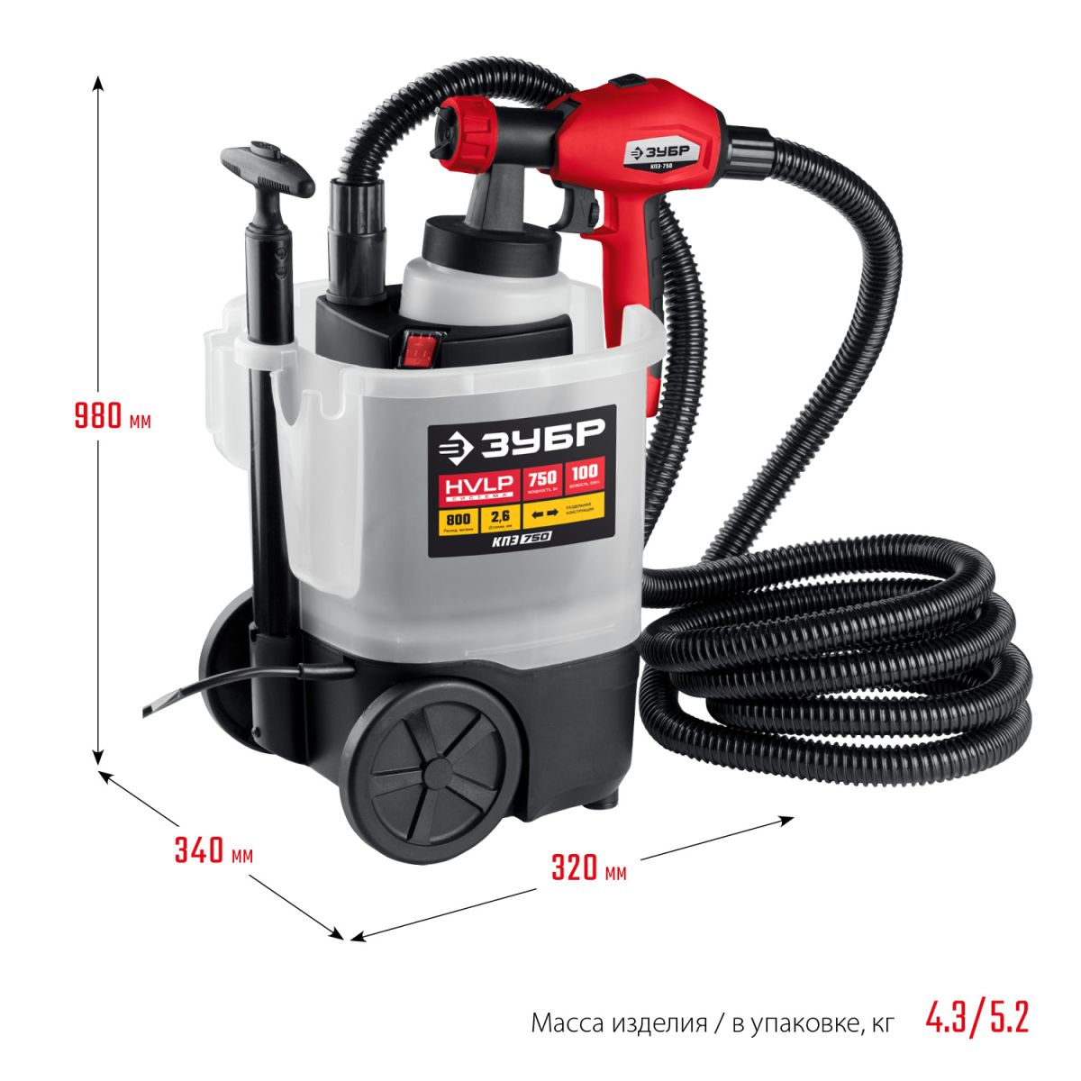 Читать все статьиКраскопульт(краскораспылитель)элект.ЗУБР КПЭ-750,HVLP,0,8л,крас.перен.0-800мл/мин,вяз.100DIN/сек