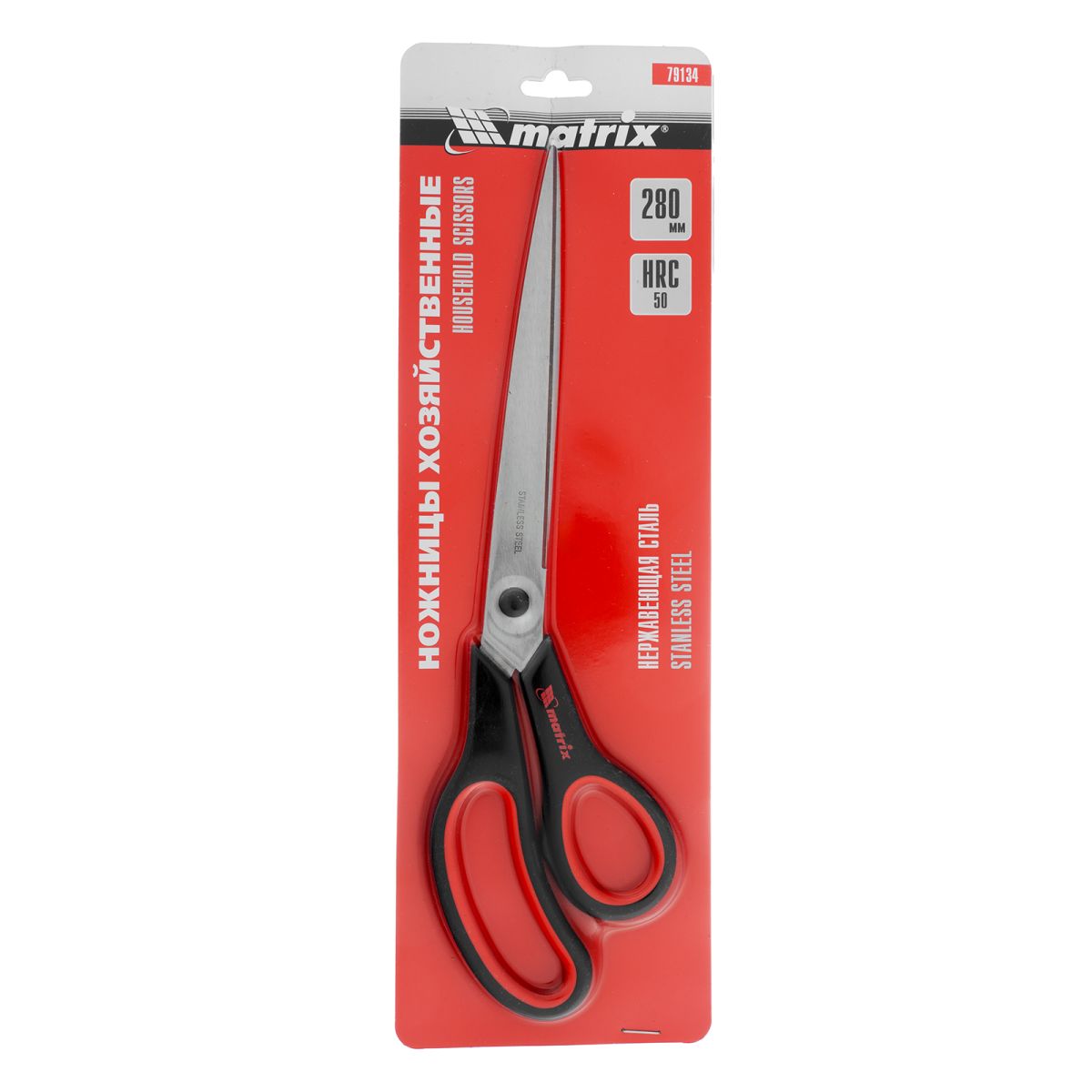 Хозяйственные ножницы Matrix 79134 длиной 280 мм, с двухкомпонентными рукоятками, используются для разрезания бумаги, картона, тканей и других материалов. Рукоятки изогнуты, что облегчает выполнение длинных продольных разрезов, например, при раскройке обоев. Инструмент применяется в быту. Преимущества Рабочая часть выполнена из нержавеющей стали, что обеспечивает долговечность инструмента. Лезвия остро заточены, поэтому ножницы легко справляются со своими задачами. Эргономичные двухкомпонентные рукоятки удобно держать в руке, что повышает комфортность работы.